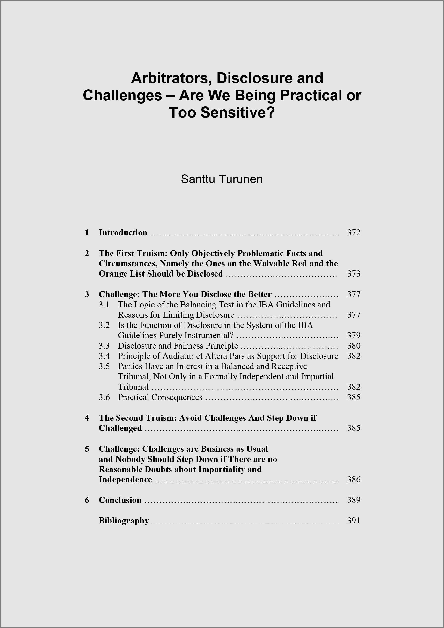 Santtu Turunen, Arbitrators, Disclosures and Challenges – Are We Being Practical Or Too Sensitive?, Scandinavian Studies in Law Volume 63, Arbitration, 2017
